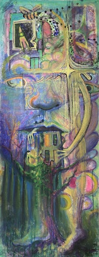 Acrylic and mixed media gel sticks on unframed canvas
